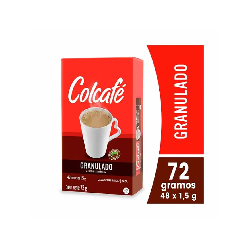 Café soluble granulado, caja x 30 sobres de 1.5 gramos, marca Colcafé.