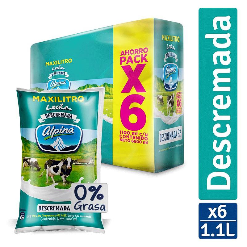 Leche Alpina Descremada Sixpack 1100ml