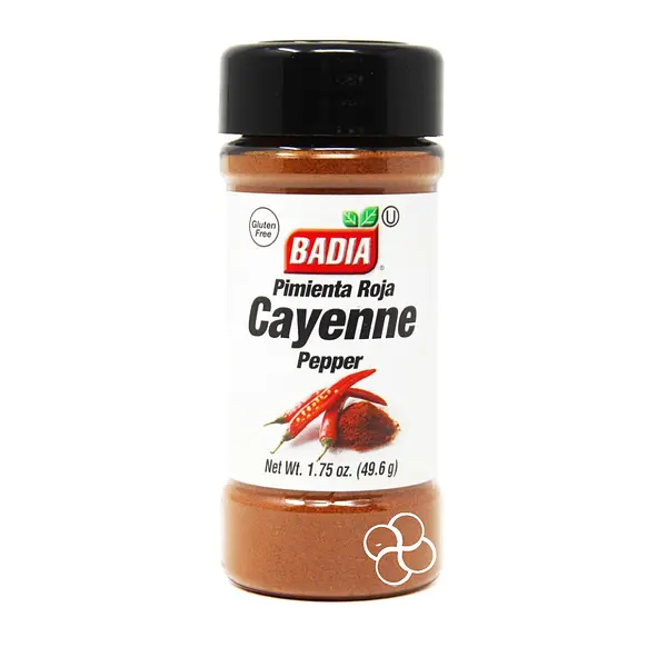 Pimienta roja cayenne Badia 49.6g, especia picante que realza el sabor de tus comidas.